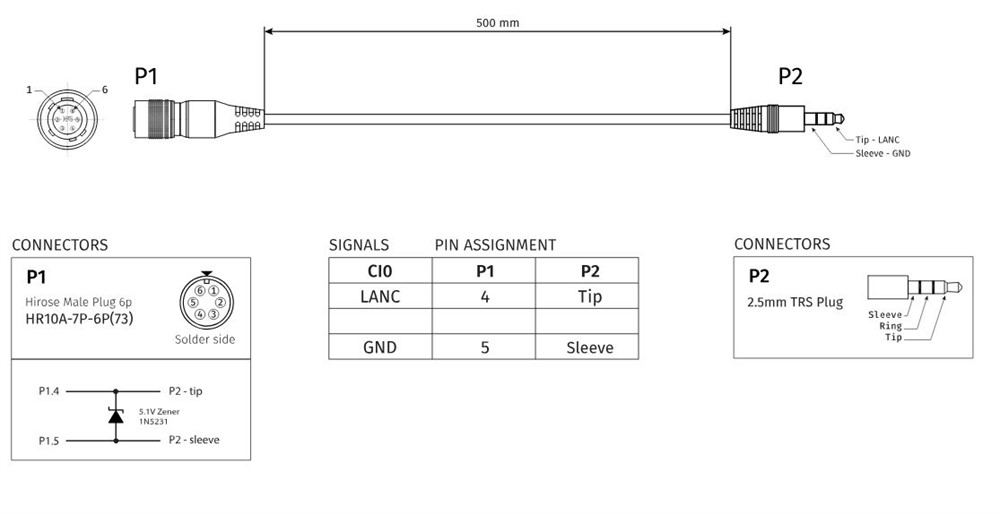 CY-CI0/CY-RIO adapter cable for LANC controlled cameras or Canon Remote-A port.