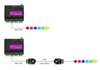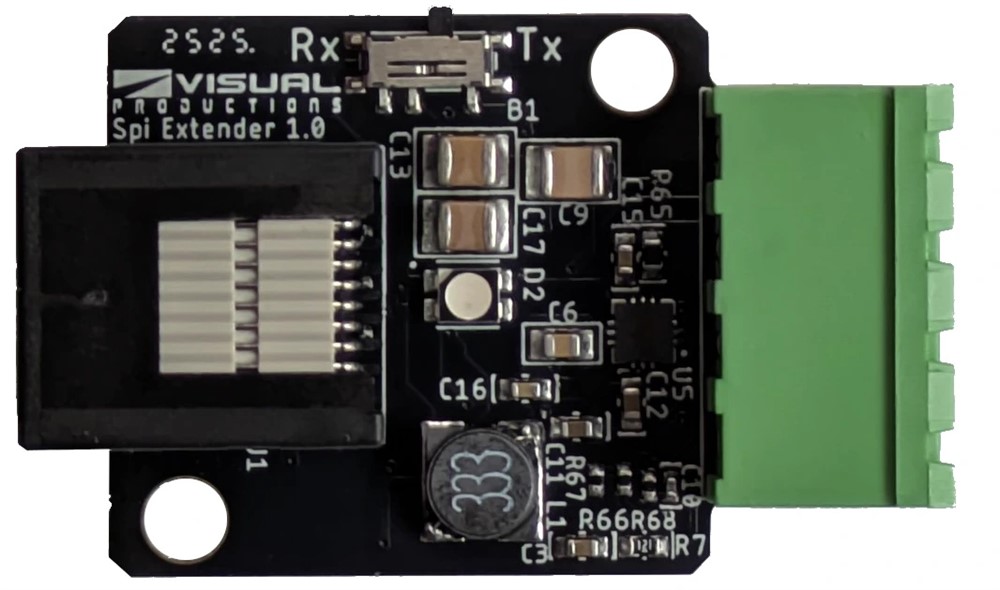 Simply pair two SpiExtenders per SPI signal path—one as a transmitter at the controller end and one as a receiver by the LEDs—with a handy built-in switch to toggle between modes.